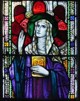 Ida, called the "Brigid of Munster", was born in 480 in the present County Waterford. Her father was Cennfoelad or Confhaola and her mother was Necta. Cennfoelad was descended from Felim the lawgiver.She was baptised as Deirdre and grew up in Drum, County Waterford. Ita was said to embody the six virtues of Irish womanhood – wisdom, purity, musical ability, gentle speech and needle skills. She is also reported to have rejected a prestigious marriage for a life as a consecrated woman religious. At the age of sixteen she moved to Cluain Credhail, a place-name that has ever since been known as Killeedy – meaning "Church of St. Ita" – in County Limerick, where she founded a small community of nuns and resided for the remainder of her life, in community with other consecrated women. Bishop Declan of Ardmore conferred the veil on her. Legend has it that Ita was lead to Killeedy by three heavenly lights. The first was at the top of the Galtee mountains, the second on the Mullaghareirk mountains and the third at Cluain Creadhail, which is nowadays Killeedy. Her sister Fiona also went to Killeedy with her and became a member of the community.
